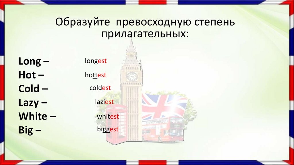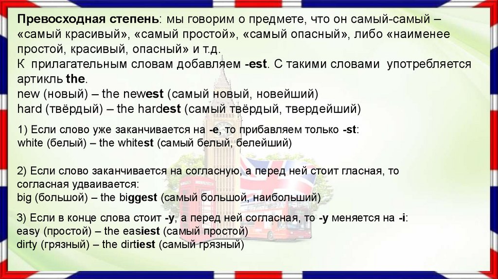 big (большой) – the biggest (самый большой, наибольший)