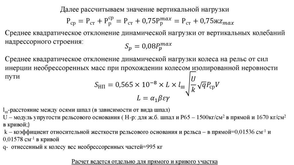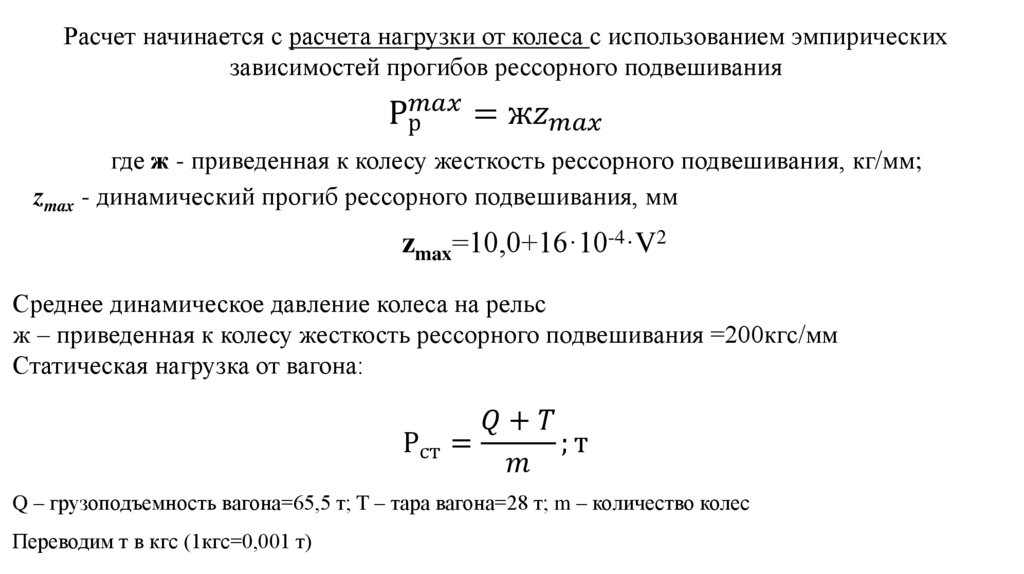 Расчет начинается с расчета нагрузки от колеса с использованием эмпирических