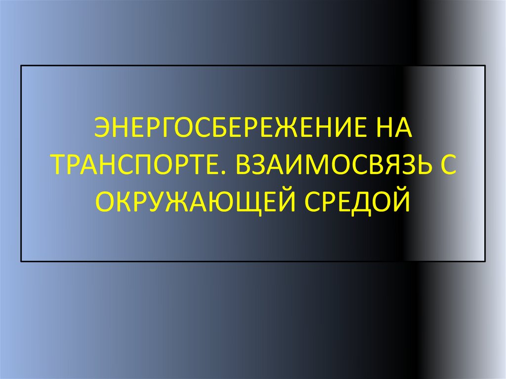 Энергосбережение на транспорте. Взаимосвязь с окружающей средой