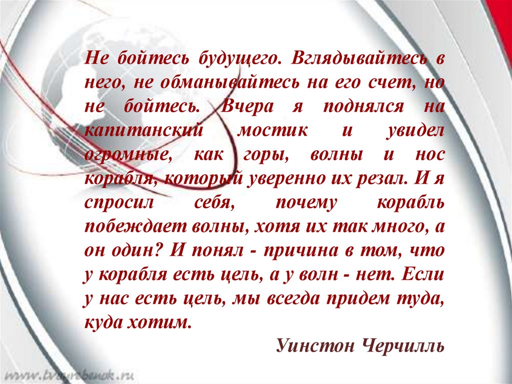Не бойтесь будущего. Вглядывайтесь внего, не обманывайтесь на его счет, но