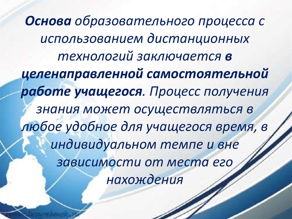 Основа образовательного процесса сиспользованием дистанционных