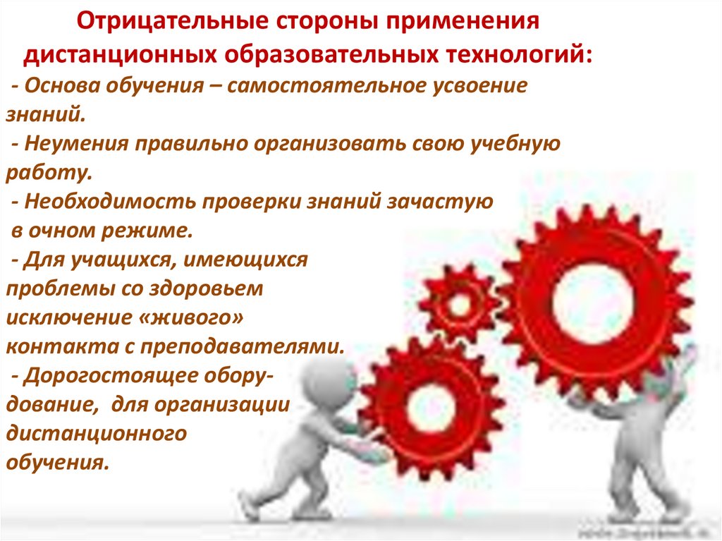 Отрицательные стороны применениядистанционных образовательных технологий: