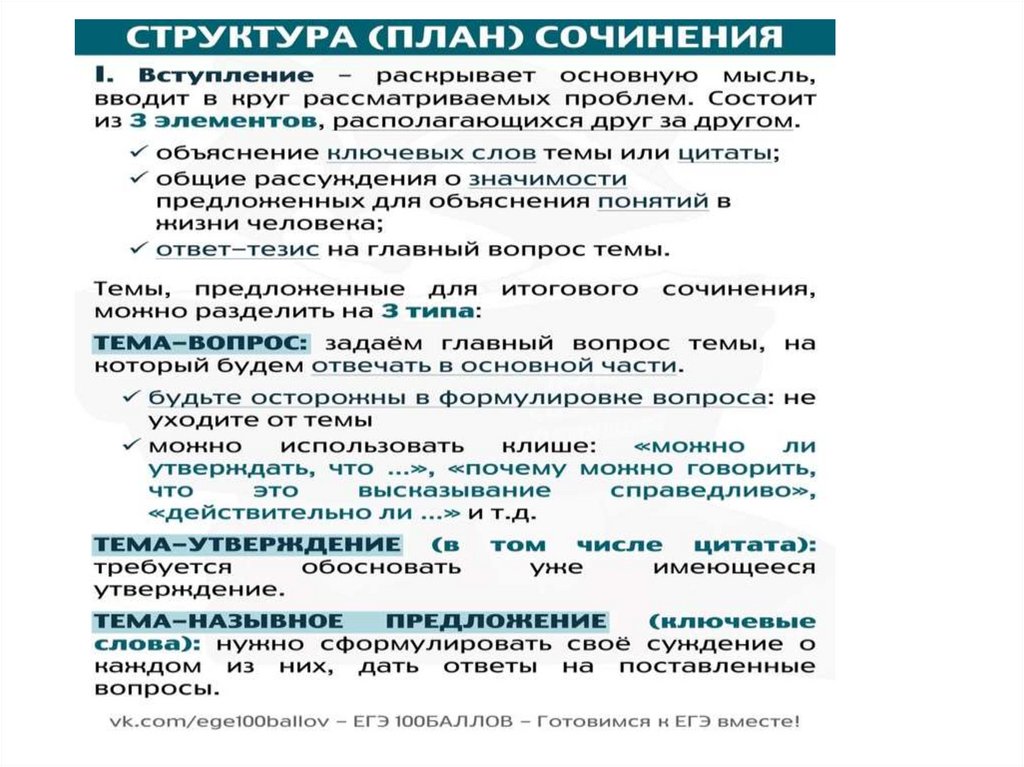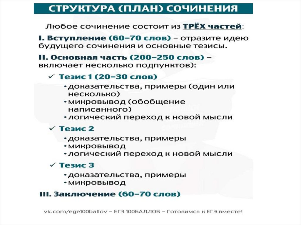 Итоговое сочинение. Структура, критерии ФИПИ, план подготовки