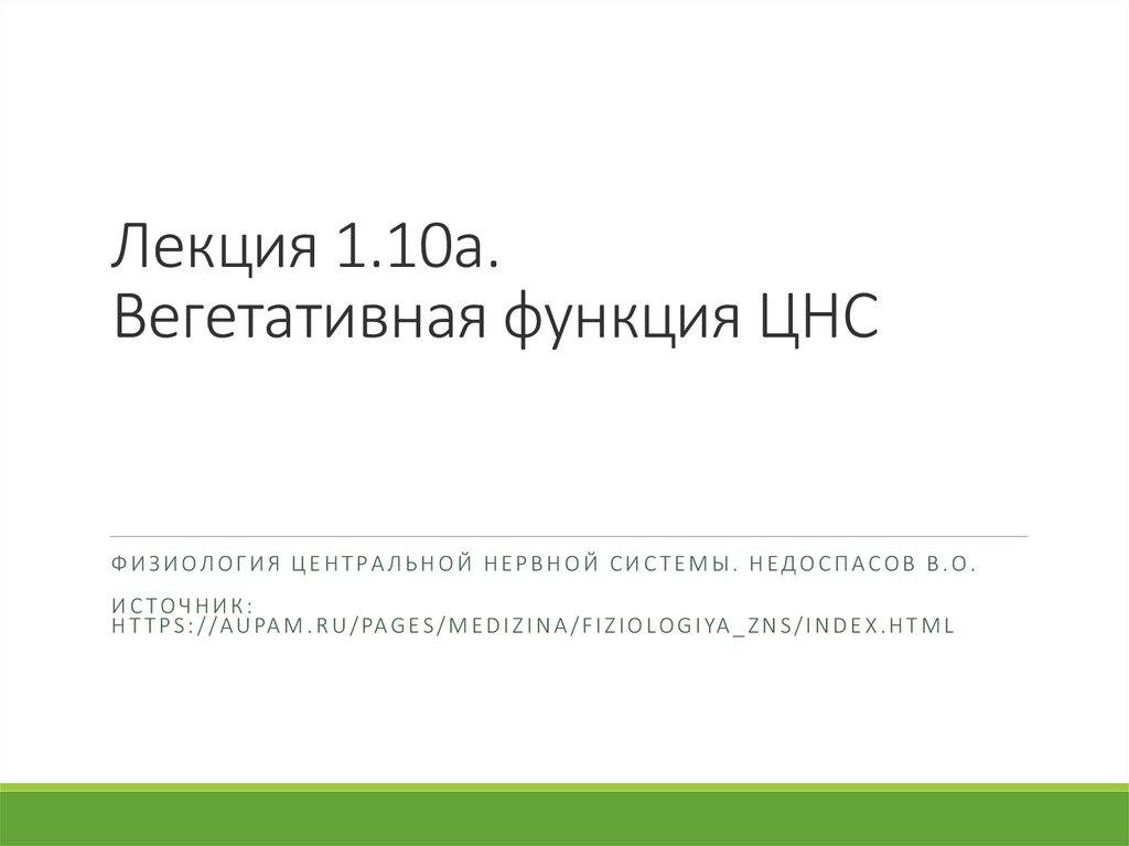ФИЗИОЛОГИЯ ЦЕНТРАЛЬНОЙ НЕРВНОЙ СИСТЕМЫ. НЕДОСПАСОВ В.О.
