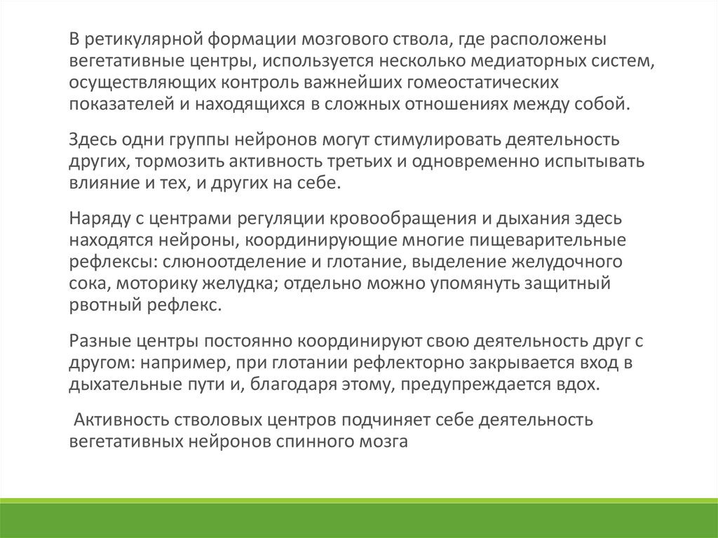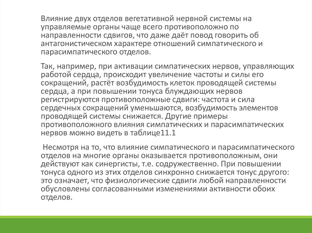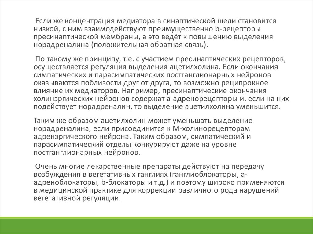 нейронов к одним и тем же постганглионарным. Благодаря этому происходит суммация возбуждения, а значит