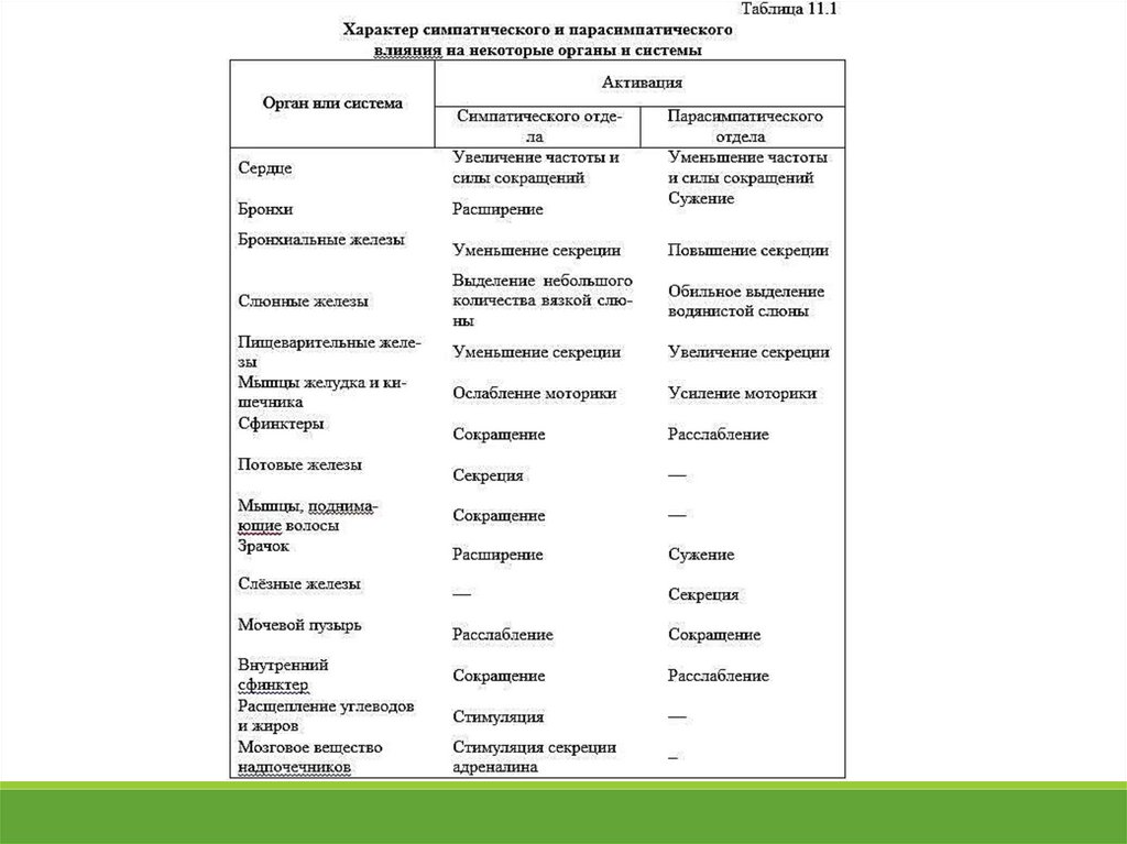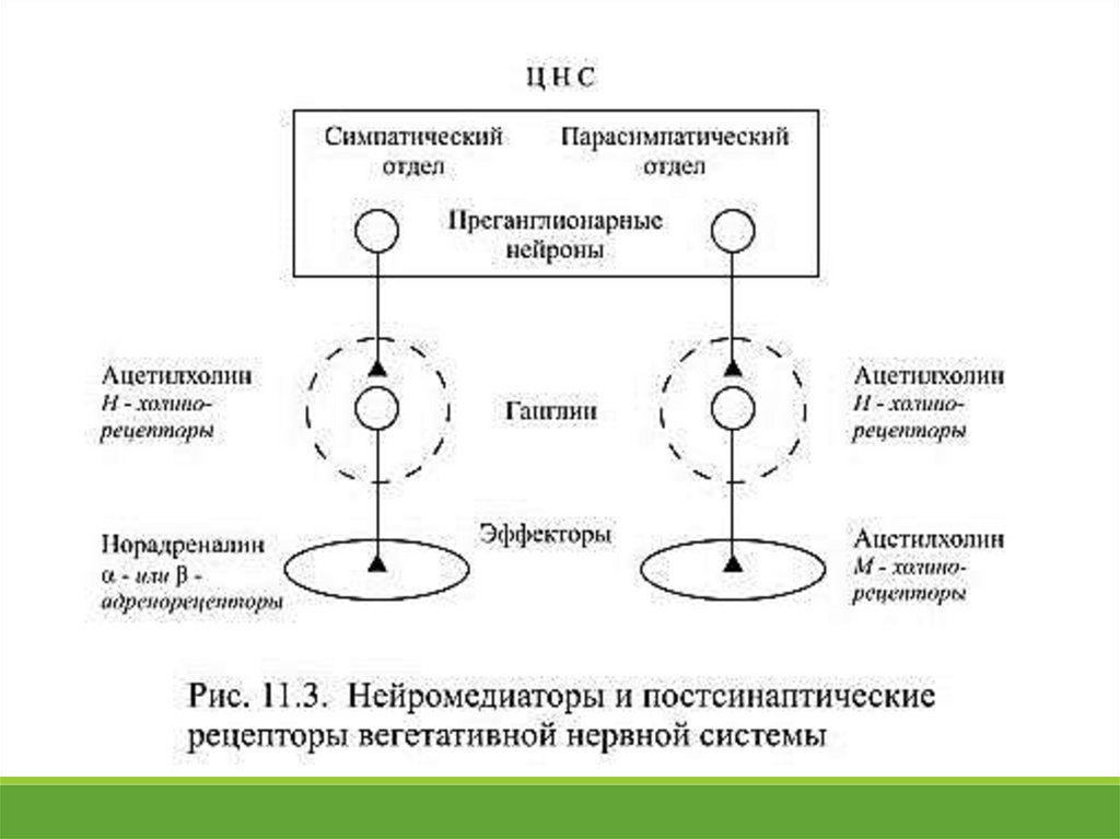 постганглионарных нейронов. Симпатический и парасимпатический отделы