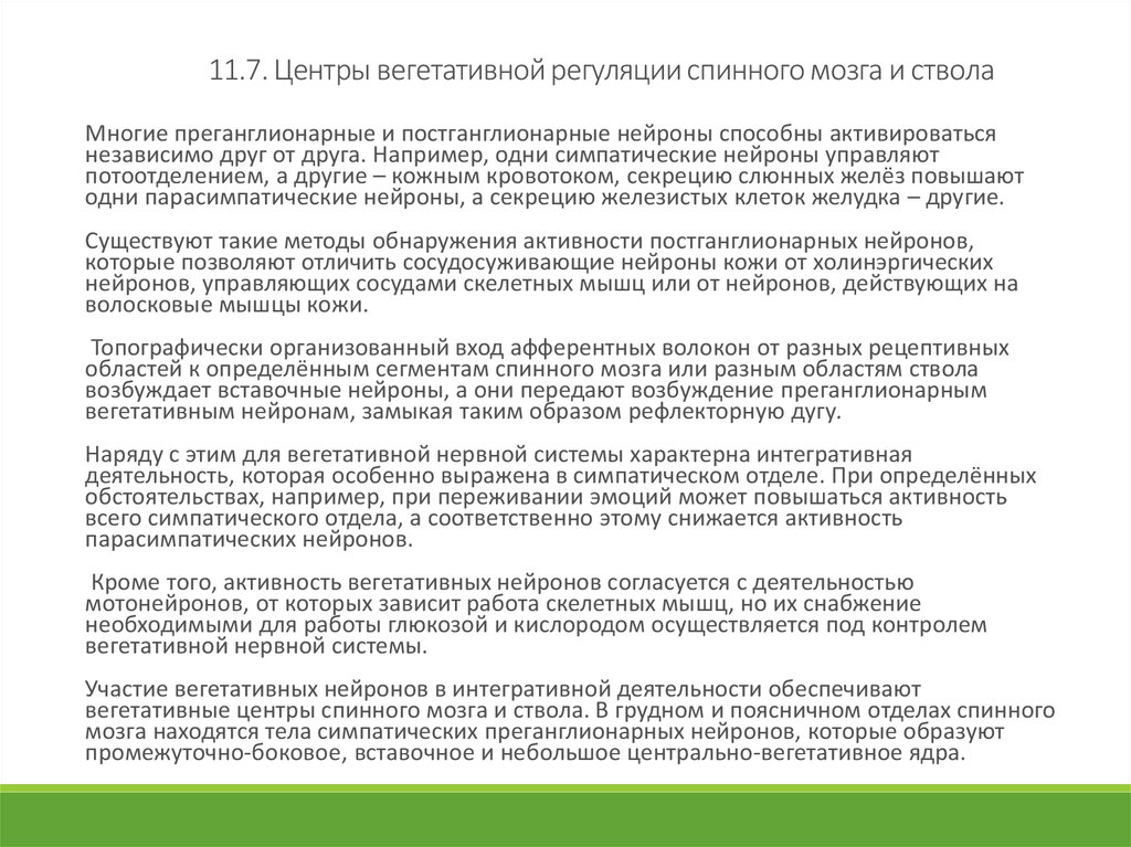 далеко от иннервируемых органов и поэтому у постганглионарных нейронов довольно длинные аксоны,
