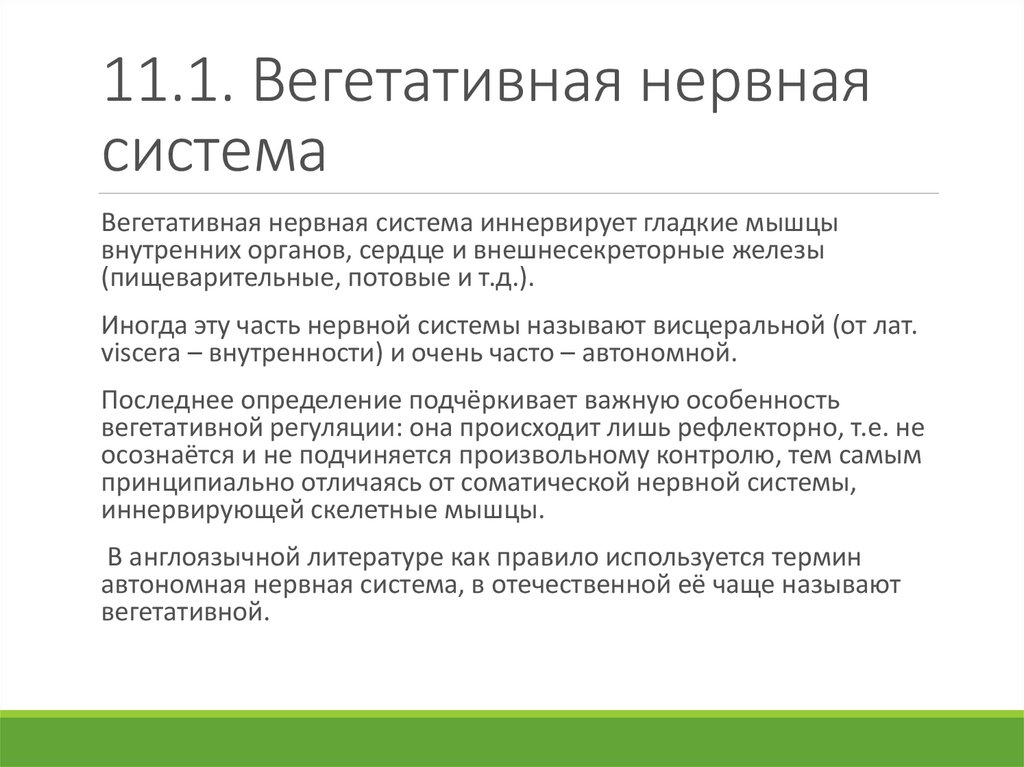 Под вегетативной (от лат. vegetare – расти) деятельностьюорганизма понимают работу внутренних органов, которая