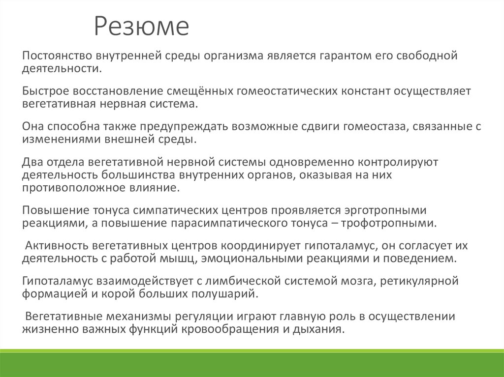 вегетативной регуляции: она происходит лишь рефлекторно, т.е. не