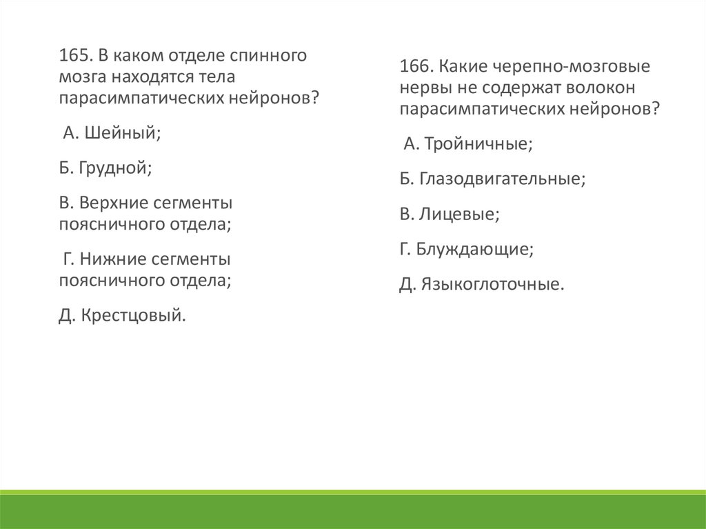 Преганглионарные нейроны парасимпатического отдела находятся, вопервых, в стволе мозга, откуда аксоны этих нейронов выходят в составе