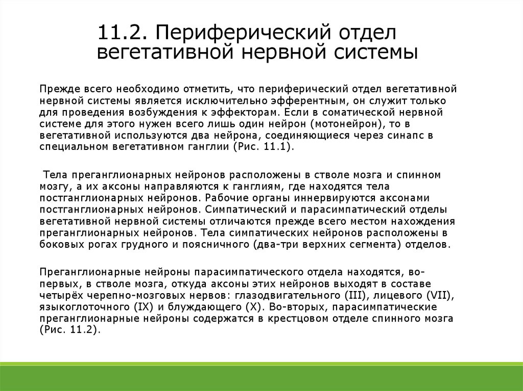 Прежде всего необходимо отметить, что периферический отдел вегетативной