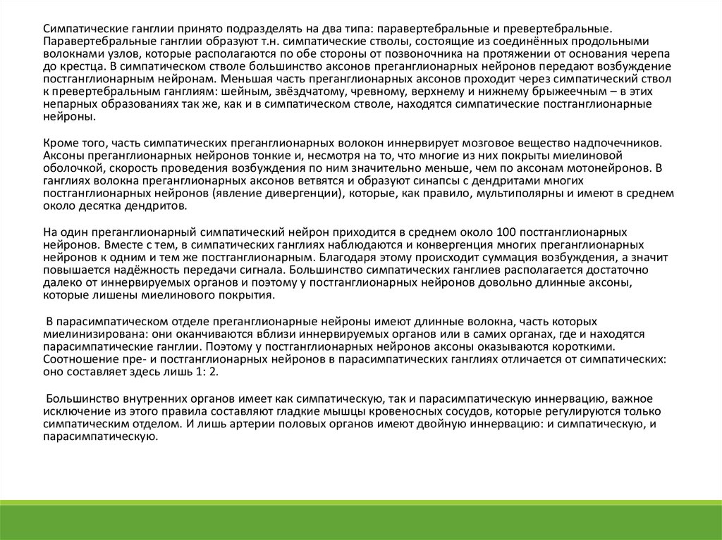 повышается надёжность передачи сигнала. Большинство симпатических ганглиев располагается достаточно