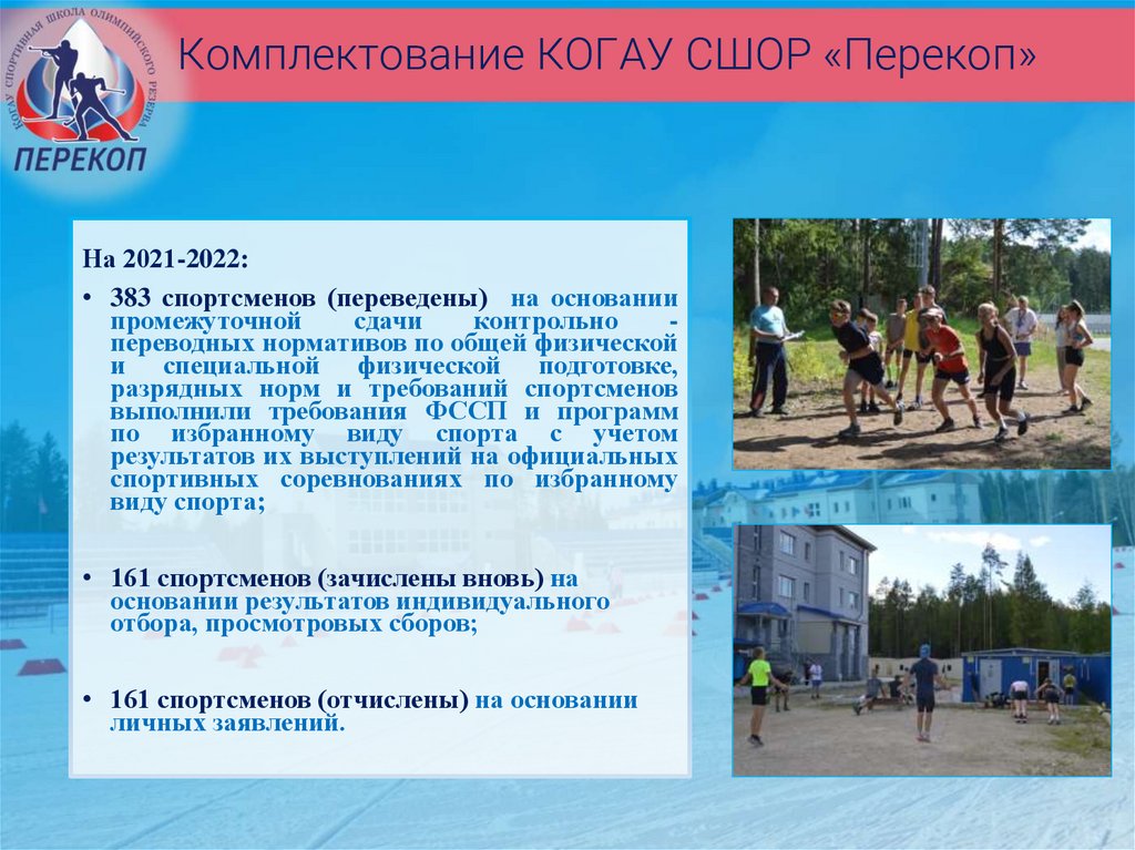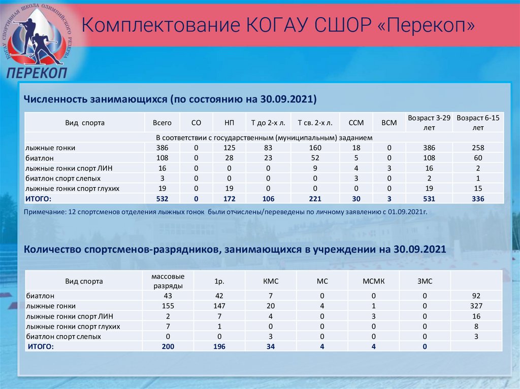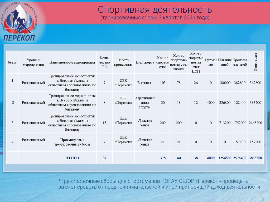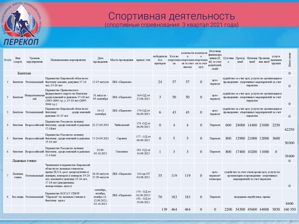 ИТОГИ РАБОТЫ КОГАУ СШОР«ПЕРЕКОП»за 3 квартал 2021