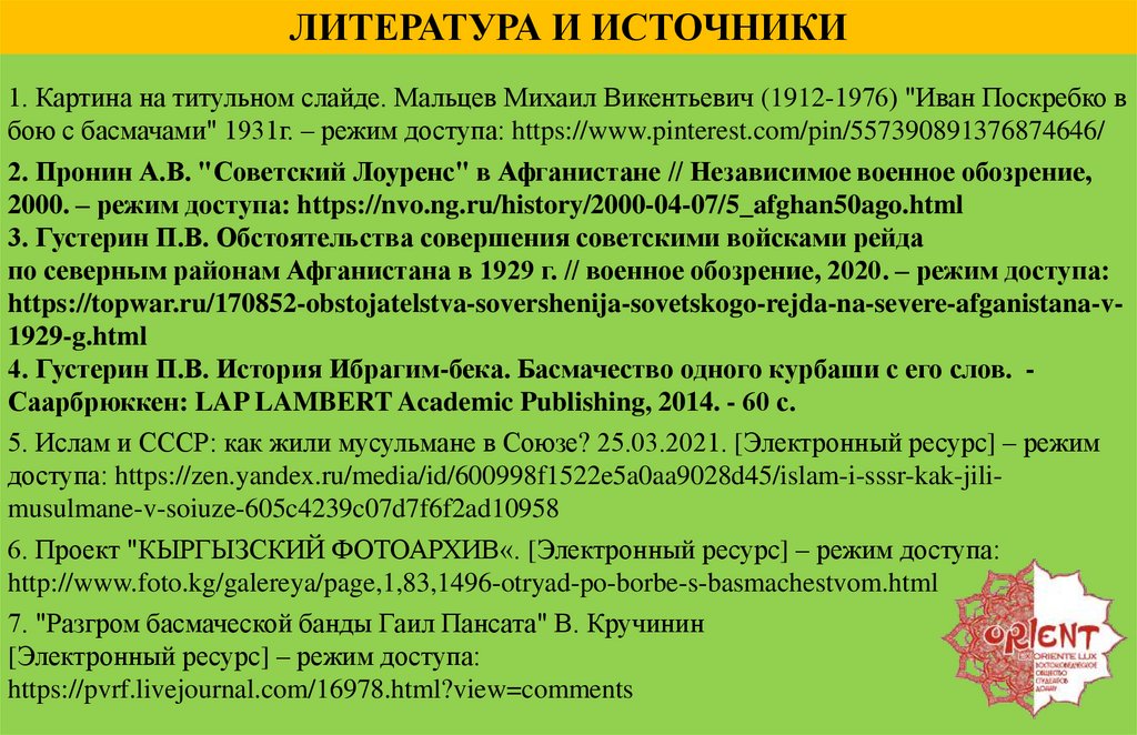 4. Густерин П.В. История Ибрагим-бека. Басмачество одного курбаши с его слов. Саарбрюккен: LAP LAMBERT Academic Publishing, 2014. - 60 с.