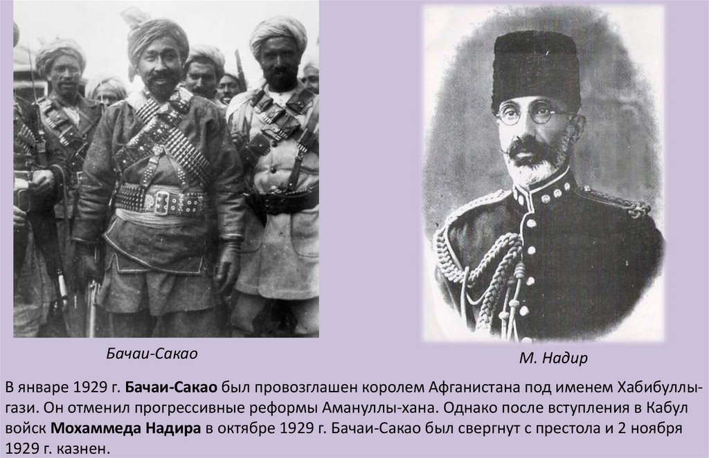 войск Мохаммеда Надира в октябре 1929 г. Бачаи-Сакао был свергнут с престола и 2 ноября