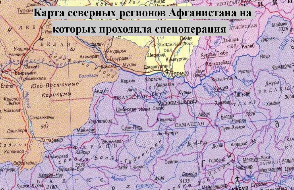 Карта северных регионов Афганистана накоторых проходила спецоперация
