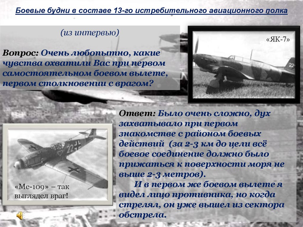 Боевые будни в составе 13-го истребительного авиационного полка(из интервью)
