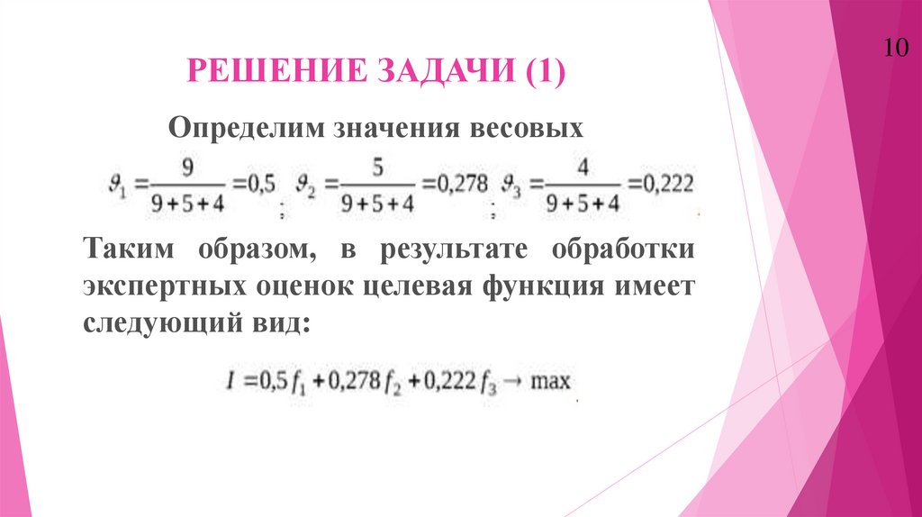 РЕШЕНИЕ ЗАДАЧИ (1)Определим значения весовых