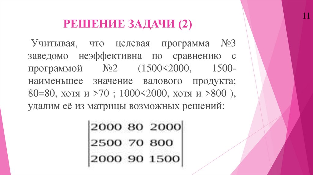 РЕШЕНИЕ ЗАДАЧИ (2)Учитывая, что целевая программа №3