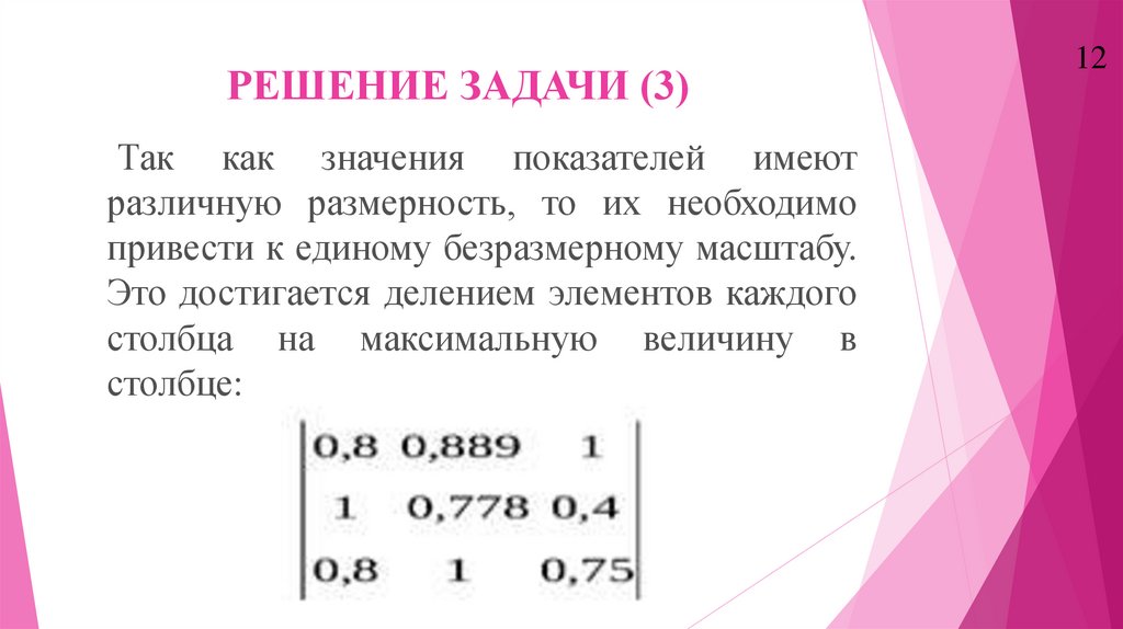 РЕШЕНИЕ ЗАДАЧИ (3)Так как значения показателей имеют