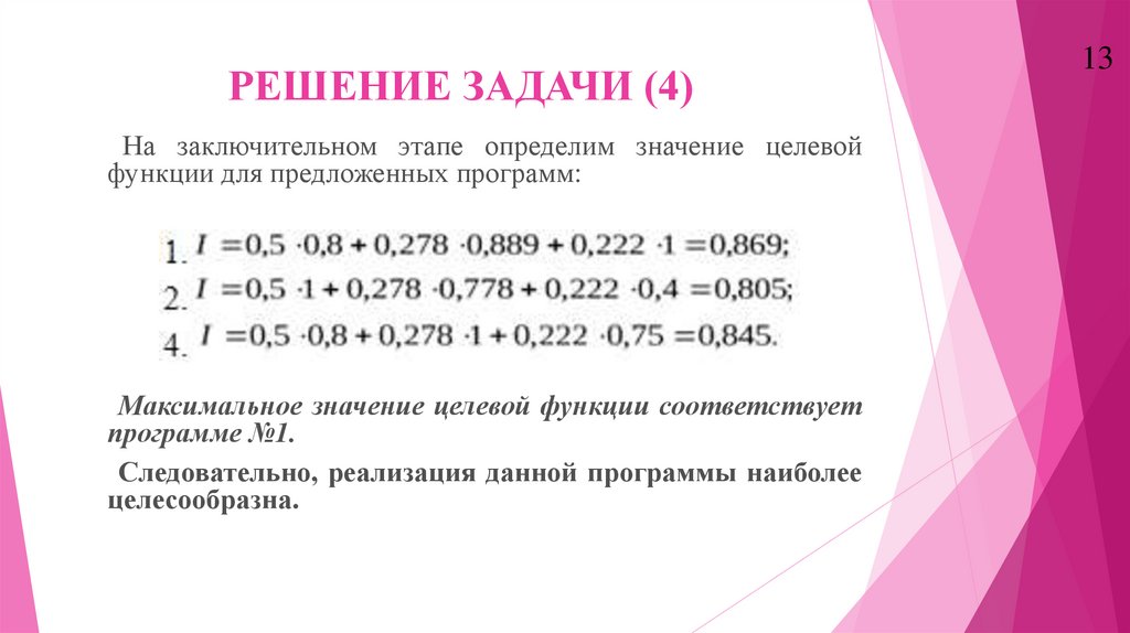 РЕШЕНИЕ ЗАДАЧИ (4)На заключительном этапе определим значение целевой