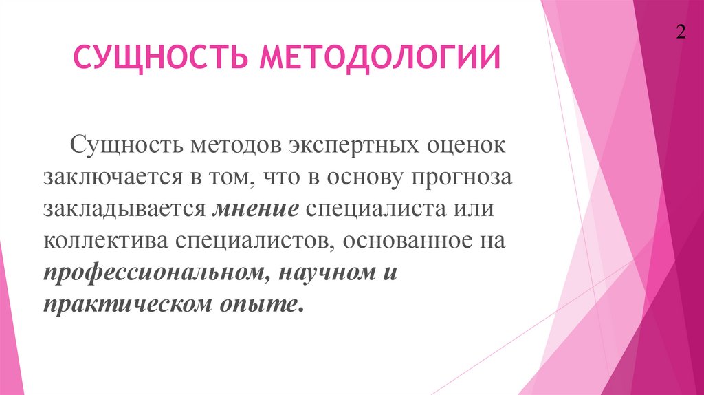 СУЩНОСТЬ МЕТОДОЛОГИИСущность методов экспертных оценок