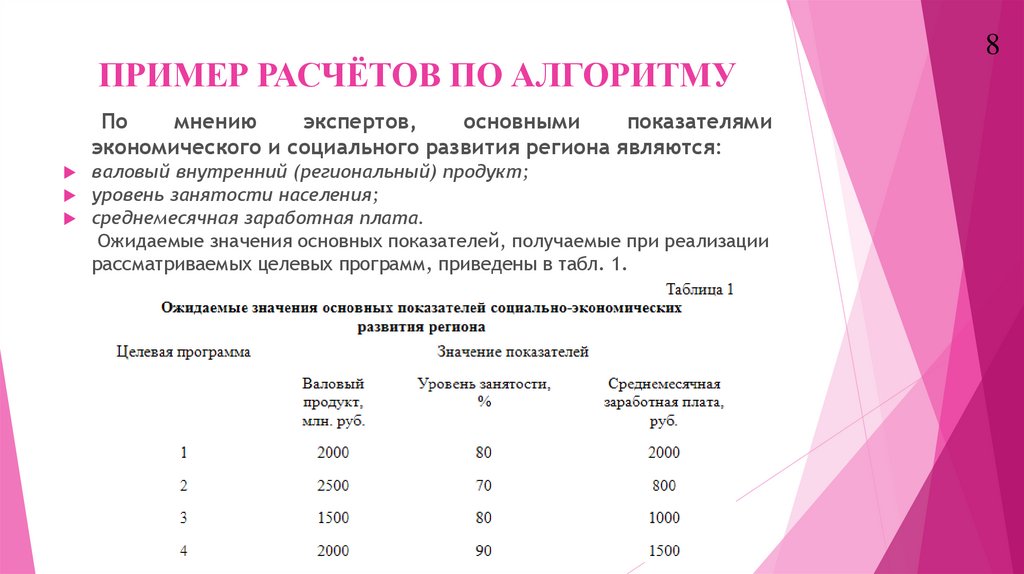 ПРИМЕР РАСЧЁТОВ ПО АЛГОРИТМУПо