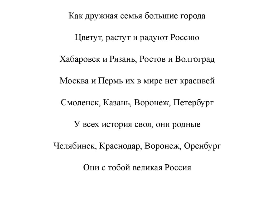 Как дружная семья большие городаЦветут, растут и радуют Россию