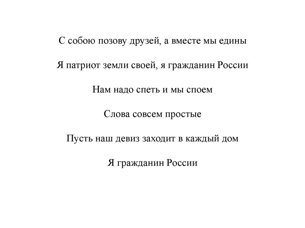 С собою позову друзей, а вместе мы единыЯ патриот земли своей, я гражданин России