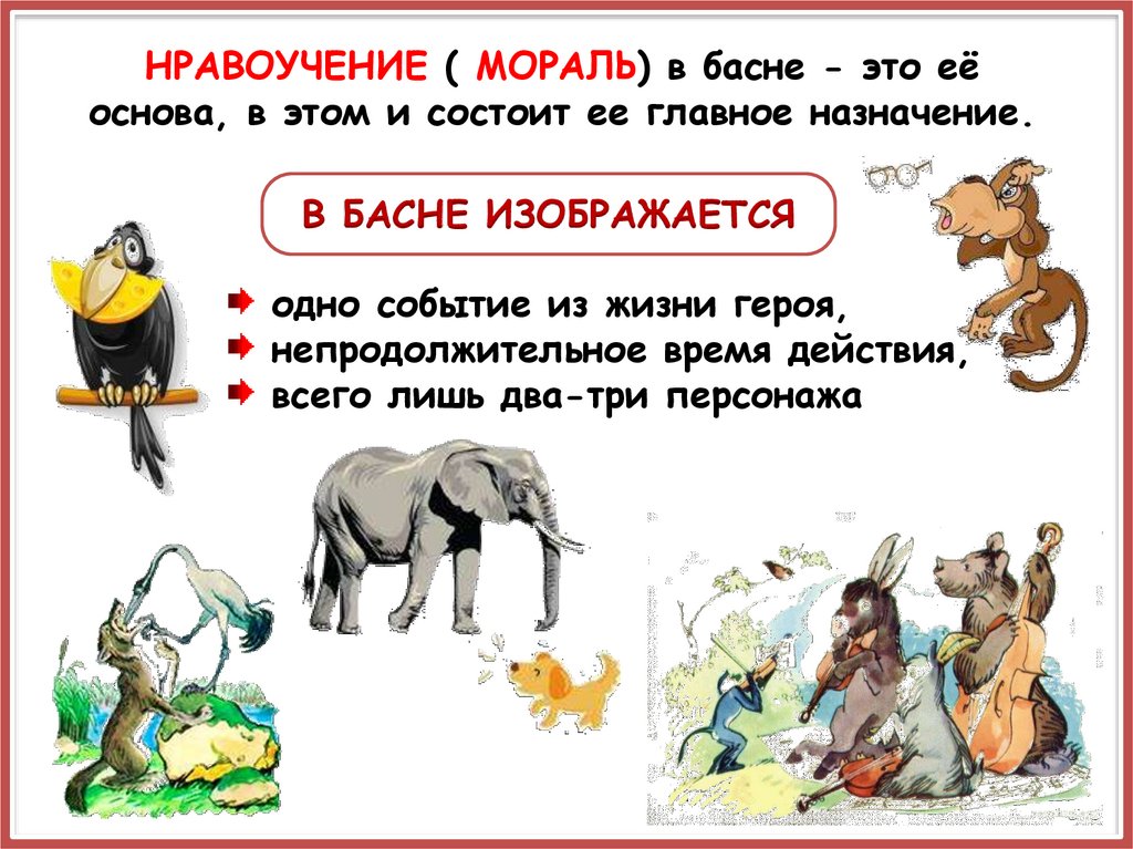 Действующими лицами басен являются животные и