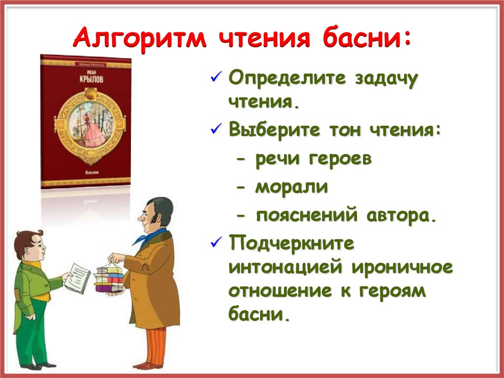 Алгоритм чтения басни:Определите задачу