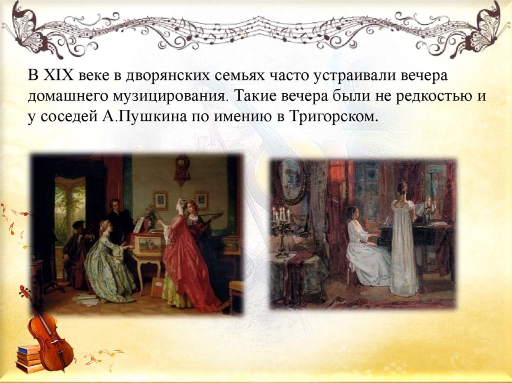 В ХIХ веке в дворянских семьях часто устраивали вечерадомашнего музицирования. Такие вечера были не редкостью и