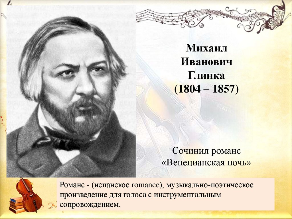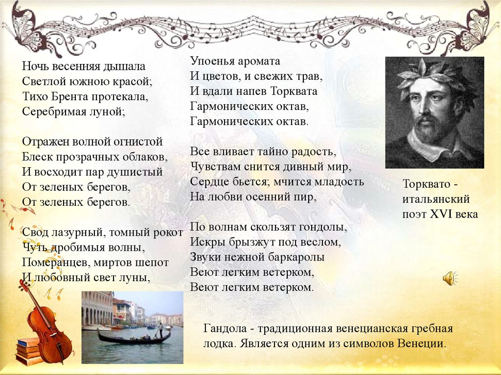 те же стихи М. Глинка сочинил романс «Венецианская ночь».