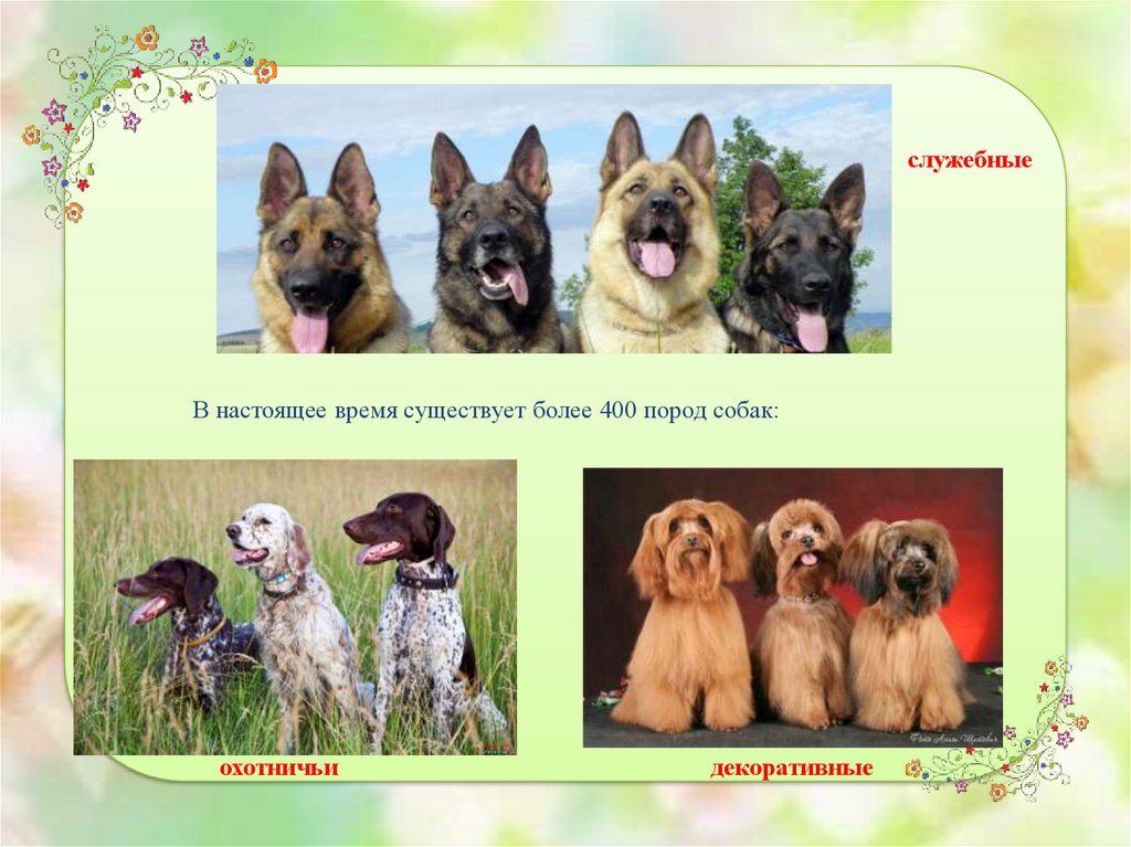 служебныеВ настоящее время существует более 400 пород собак: