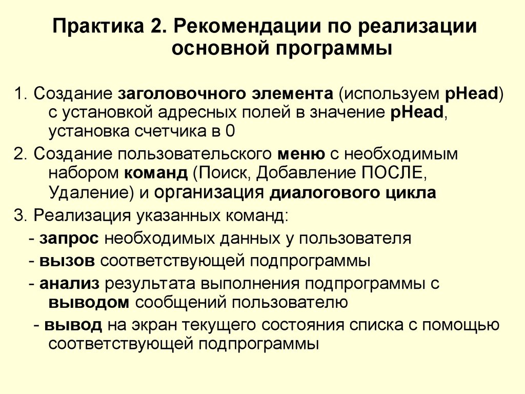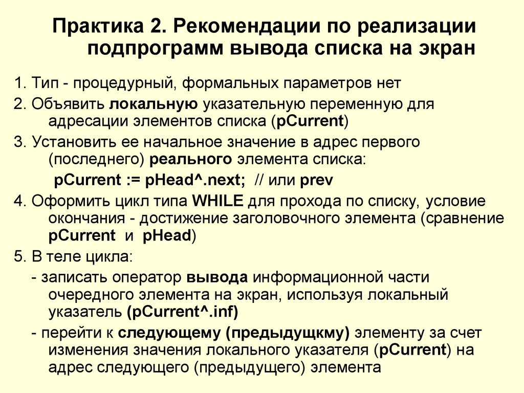 Практика 2. Рекомендации по реализацииподпрограмм вывода списка на экран