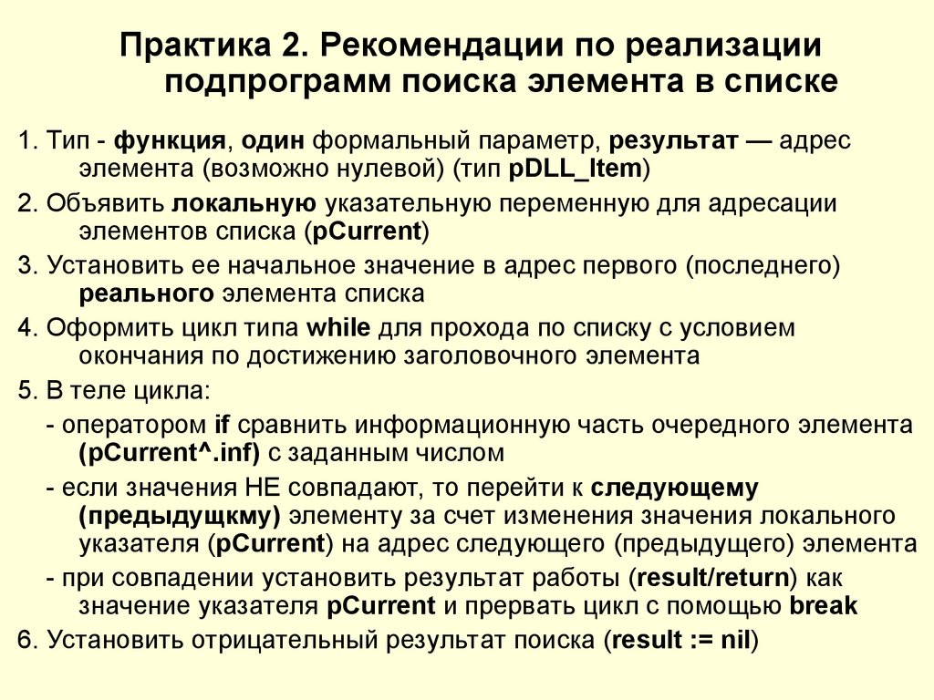 Практика 2. Рекомендации по реализацииподпрограмм поиска элемента в списке