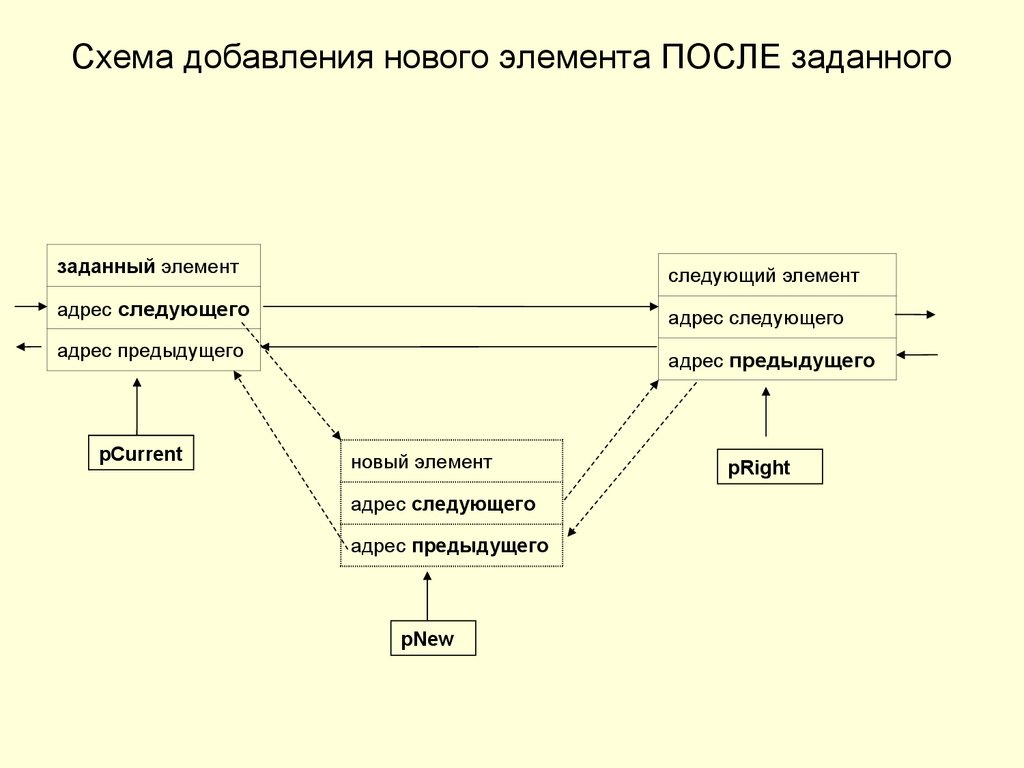 указателя (pCurrent) на адрес следующего (предыдущего) элемента