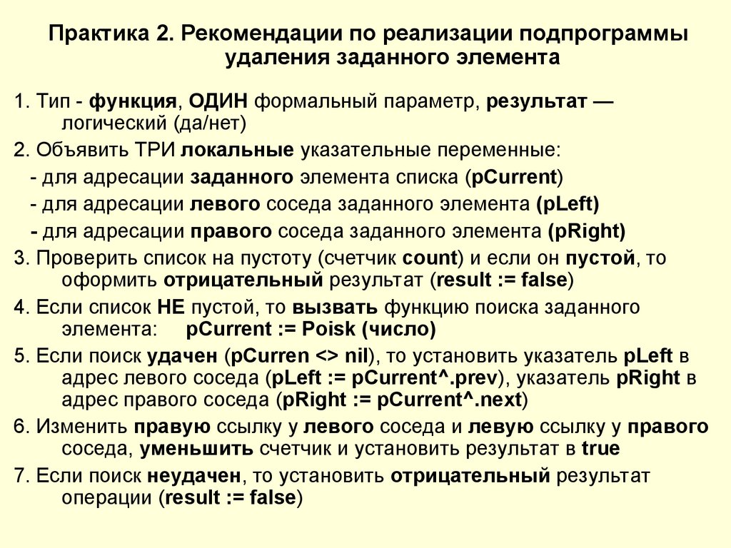 Практика 2. Рекомендации по реализации подпрограммыудаления заданного элемента