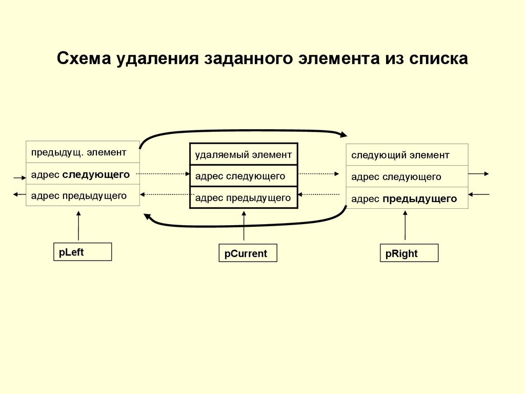 Схема удаления заданного элемента из спискапредыдущ. элемент