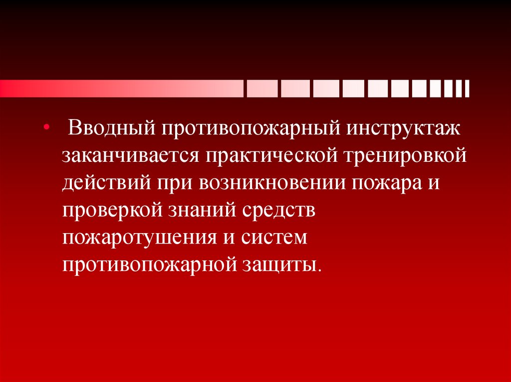 • Вводный противопожарный инструктажзаканчивается практической тренировкой