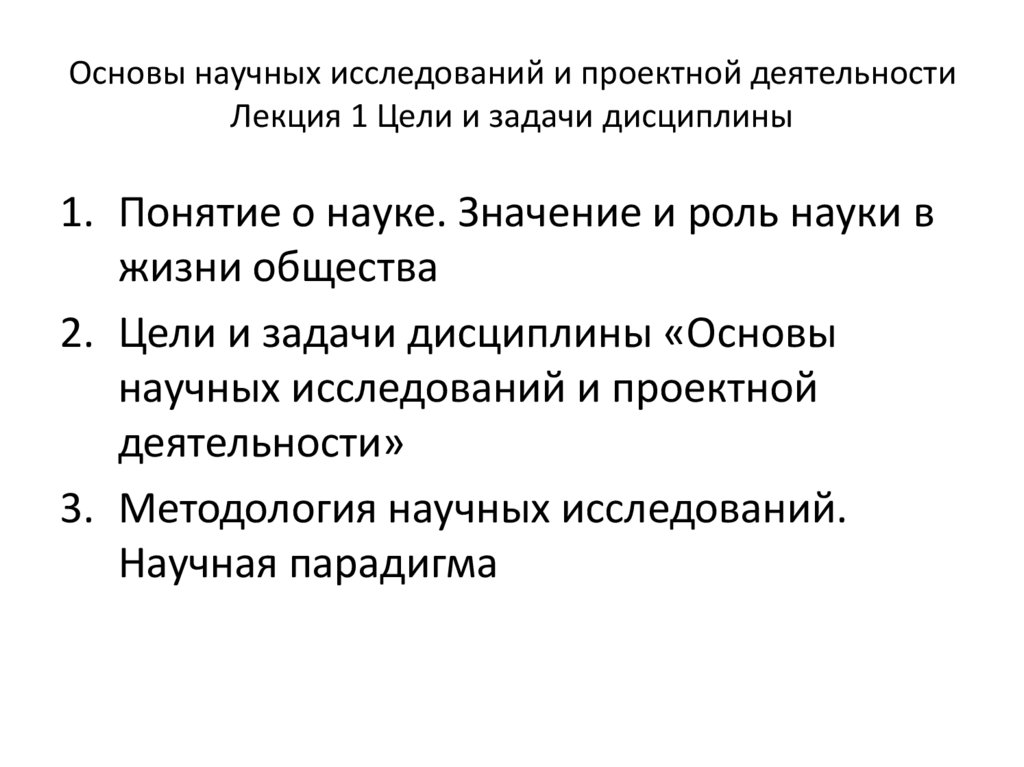 Основы научных исследований и проектной деятельностиЛекция 1 Цели и задачи дисциплины
