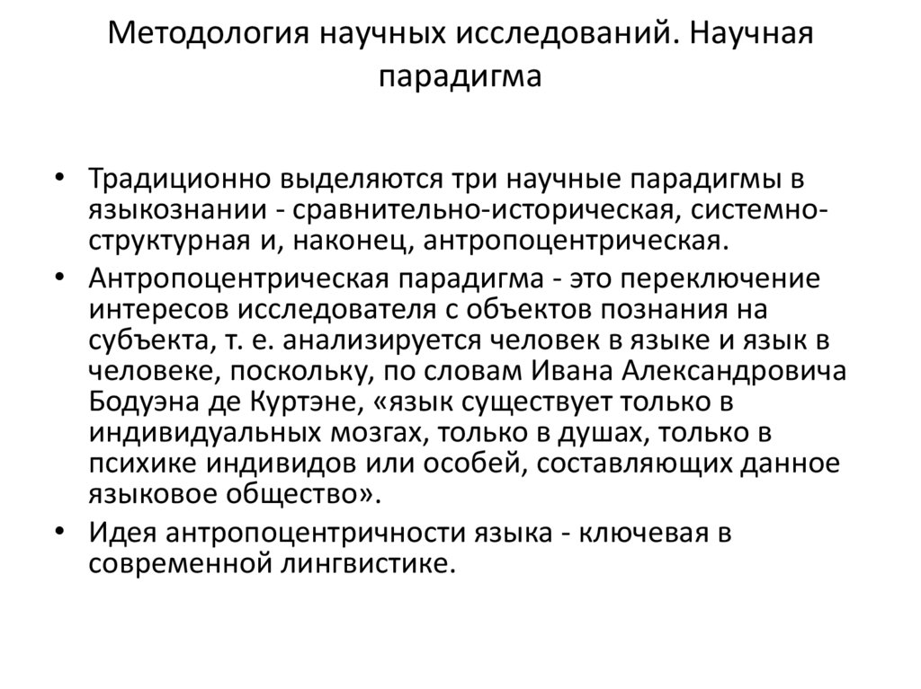 языкознании - сравнительно-историческая, системноструктурная и, наконец, антропоцентрическая.