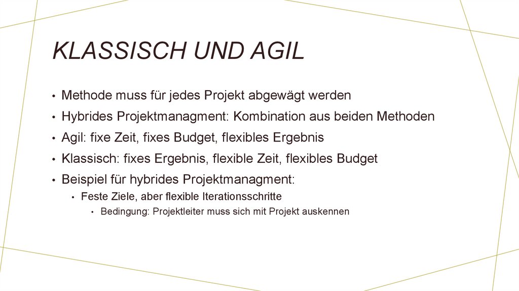 KLASSISCH UND AGILMethode muss für jedes Projekt abgewägt werden