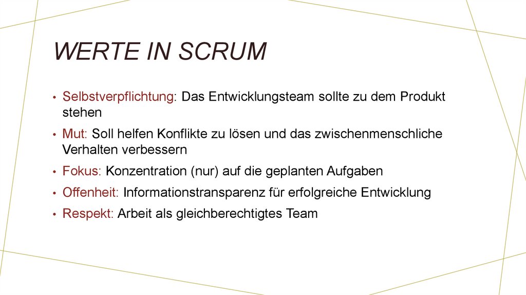 WERTE IN SCRUMSelbstverpflichtung: Das Entwicklungsteam sollte zu dem Produkt