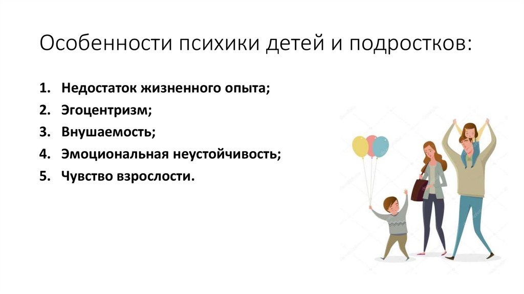 Особенности психики детей и подростков:1.