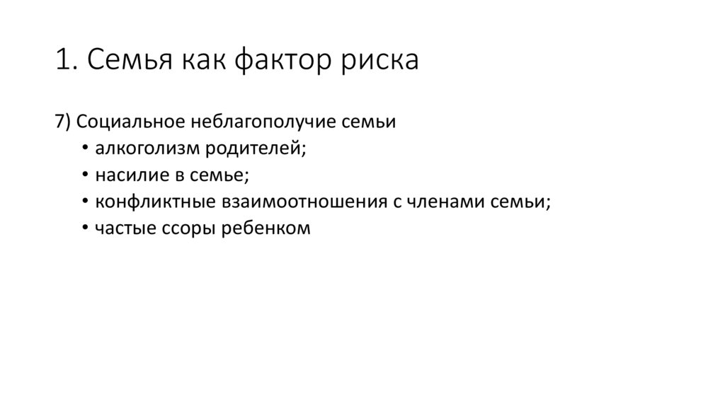 1. Семья как фактор риска7) Социальное неблагополучие семьи
