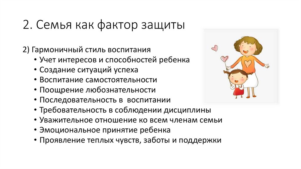 2. Семья как фактор защиты2) Гармоничный стиль воспитания