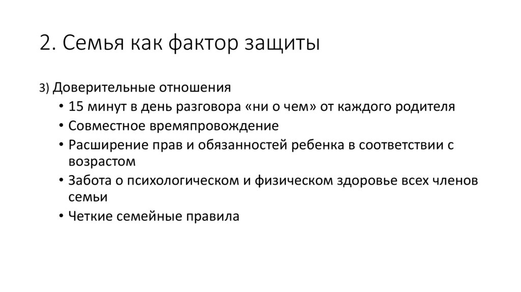 2. Семья как фактор защиты3) Доверительные отношения