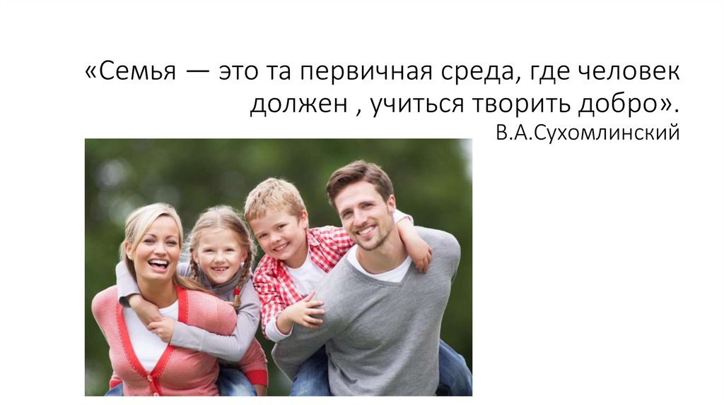 «Семья — это та первичная среда, где человекдолжен , учиться творить добро».