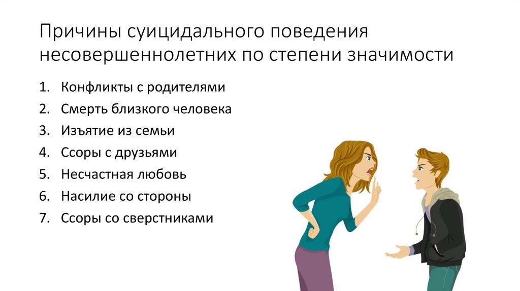 Причины суицидального поведениянесовершеннолетних по степени значимости
